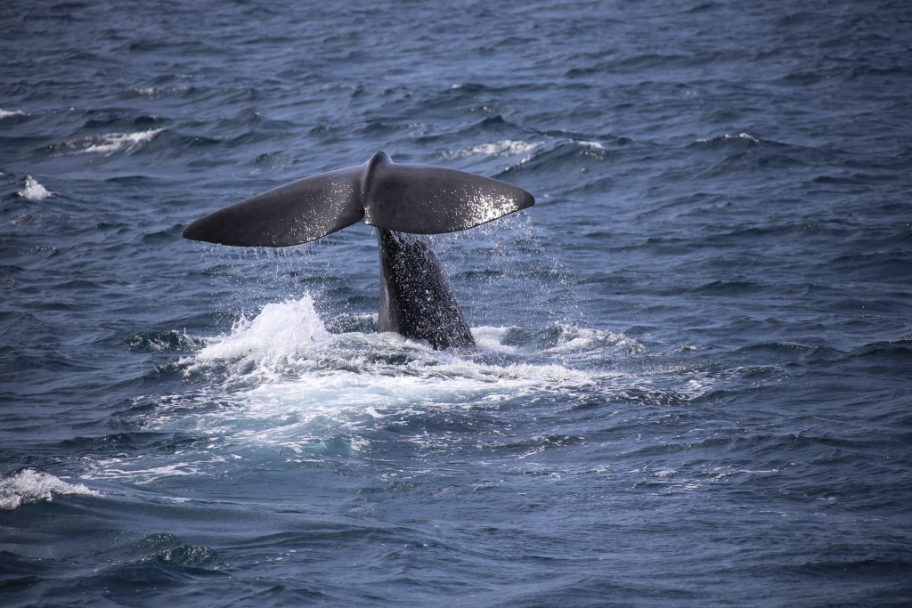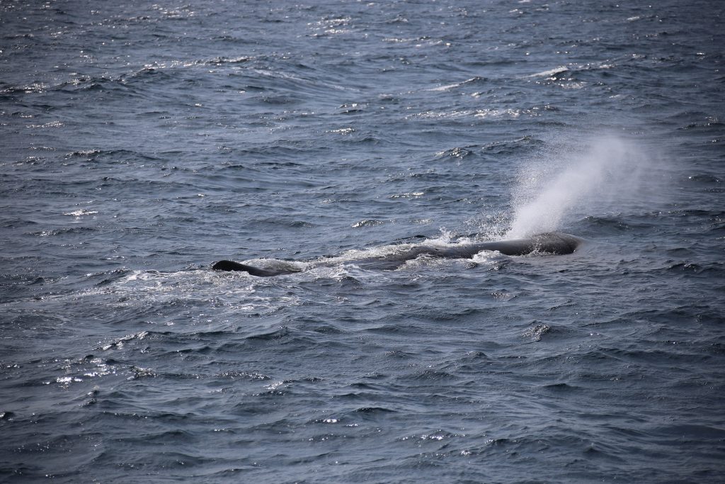 大きな巨体を見せつけ、息継ぎ中。ブローの音も聞こえる距離へ・・・
